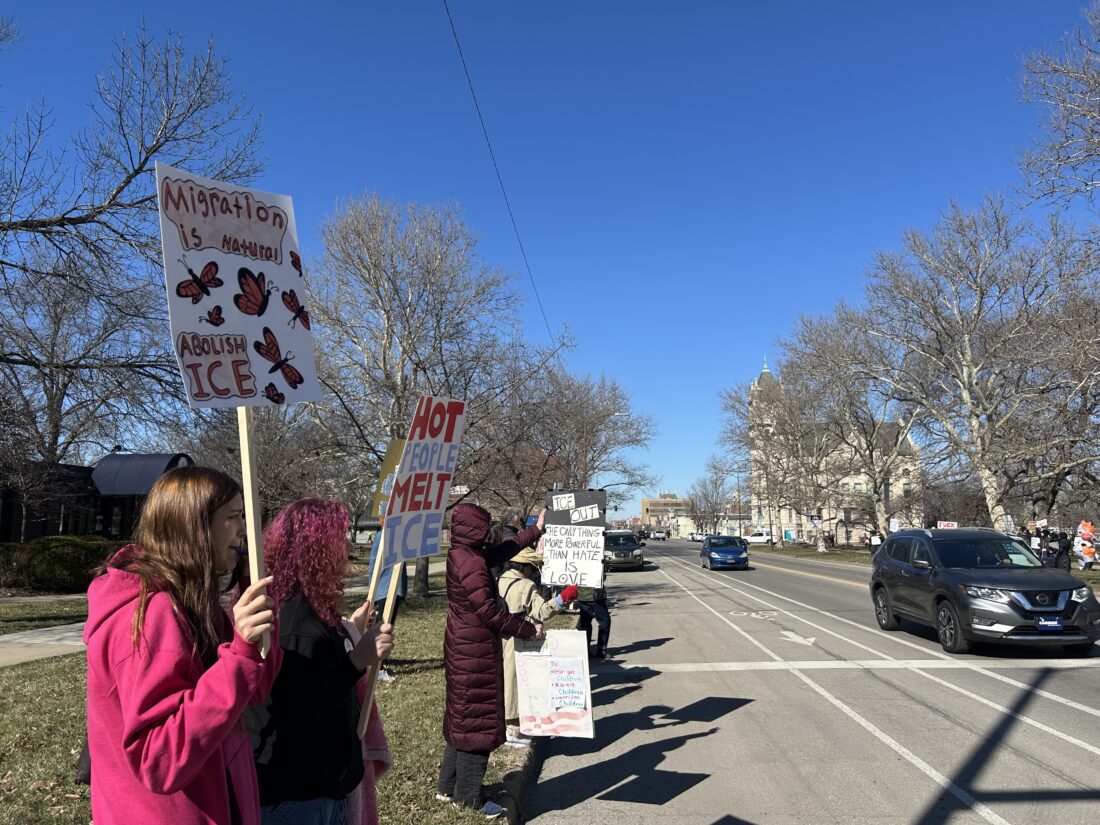 One of the organizers of Friday’s protest, who asked to be identified as MJ, told the Journal-World she was inspired to organize after hearing that “(ICE agents) stopped two students.” MJ said as a mother of four, hearing that ICE was operating in Lawrence clarified her fear of her children being stopped — despite the fact they are Native — because of racial profiling. She said “something needs to be done” if they were going to keep questioning Native people.