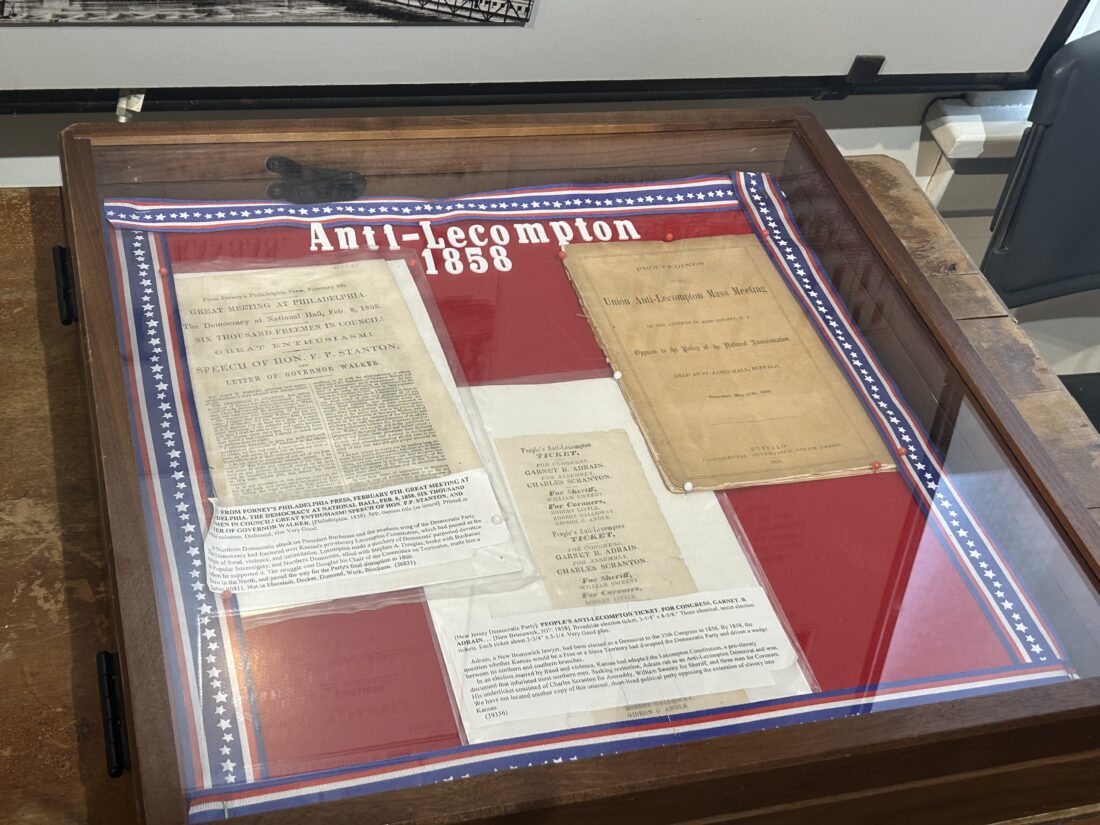 Pamphlets on display at Constitution Hall, 319 Elmore St. in Lecompton, that report on “Anti-Lecompton” meetings that took place in Philadelphia and Buffalo, N.Y. in 1858. Those demonstrations stood against the Lecompton Constitution, which would have let Kansas into the United States as a slave-state.