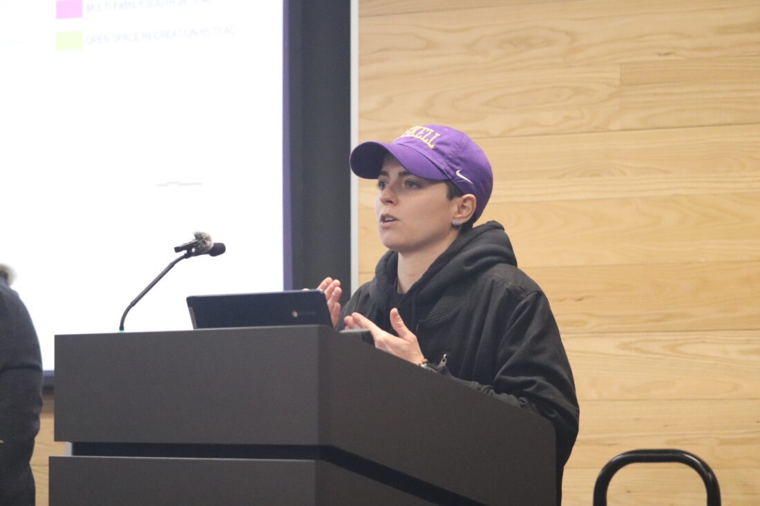 Alex Kimball Williams, an artist and activist, speaks at a forum on Saturday, March 7, 2026.