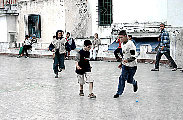 Children kick a bottle cap around in Tangier, Morocco, in this photo by Gary Mark Smith.