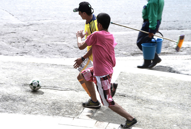 People in Colombia play street soccer in this photo by Gary Mark Smith.