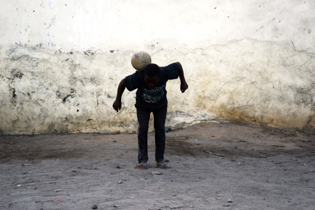 Those photos were taken during his time embedded in a U.N. peacekeeping mission in the Democratic Republic of the Congo in 2015, and they would become his entry in the exhibition, titled “Soka Kila Mahali,” Swahili for “Soccer Everywhere.”
