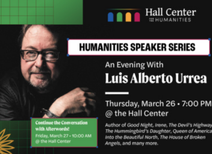 Author Event: Luis Alberto Urrea, 7-8 p.m., Hall Center for the Humanities, 900 Sunnyside Ave, or watch livestream; see hallcenter.ku.edu for details and link.