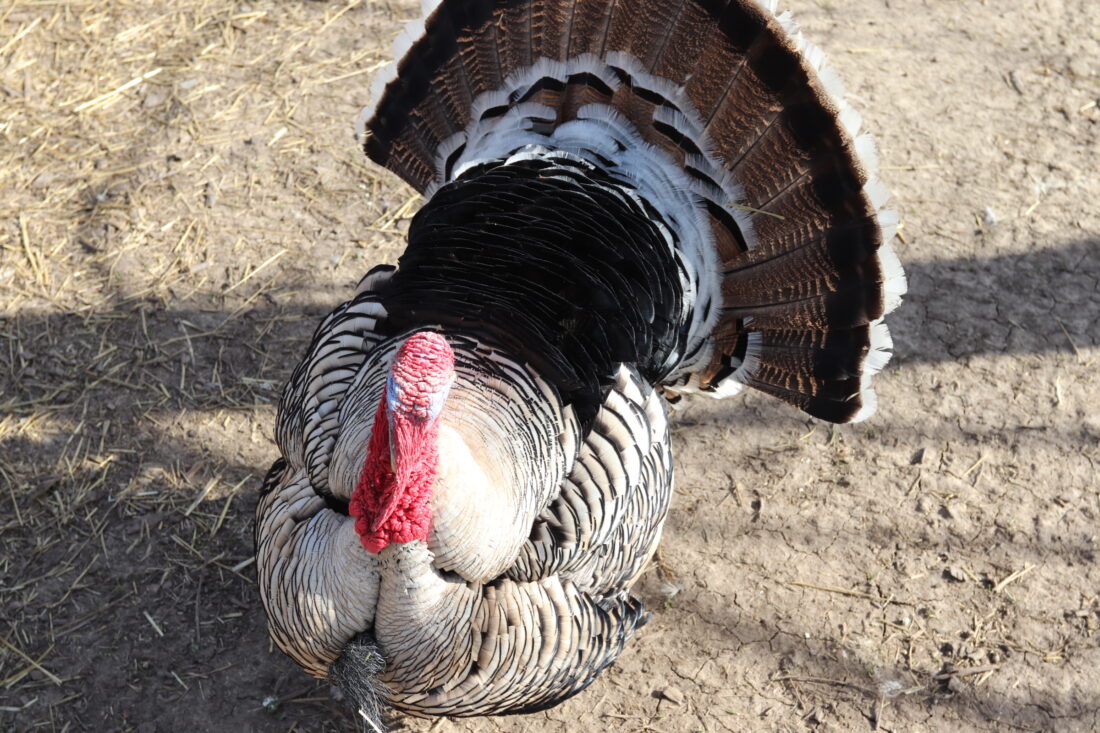 A turkey, Lincoln, is pictured at Shy 38 Inc. on Friday, March 13, 2026.