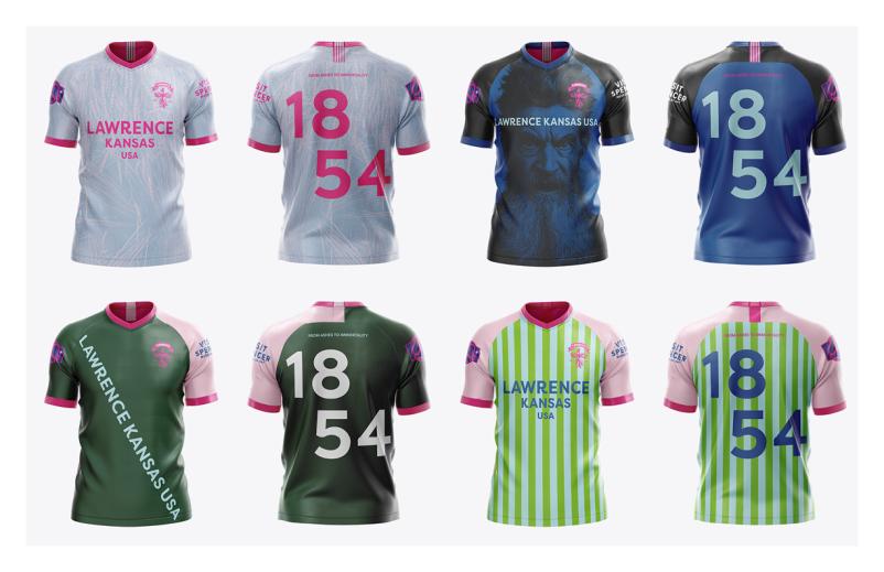 Hossler, a University of Kansas design professor, and Arnold, the graphic designer for the KU School of Architecture and Design, are among the artists being featured in the City of Lawrence’s soccer-themed Unmistakable Public Art Exhibition this summer. But rather than sculpting or painting, they’re making art that people can wear – soccer scarves and jerseys inspired by Lawrence history.