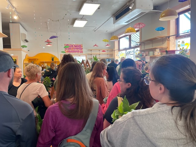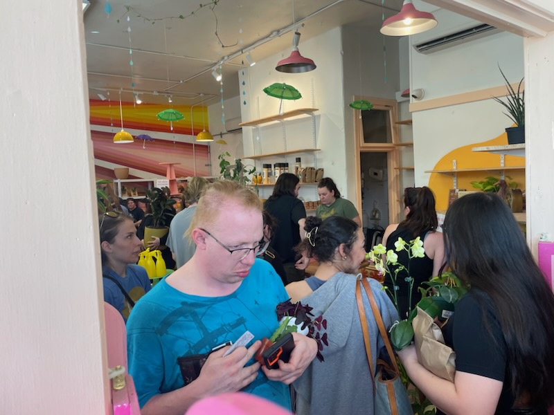 The Jungle House plant store in downtown Lawrence is closing for good today, and a crowd has turned out to make final purchases and wish the staff well.