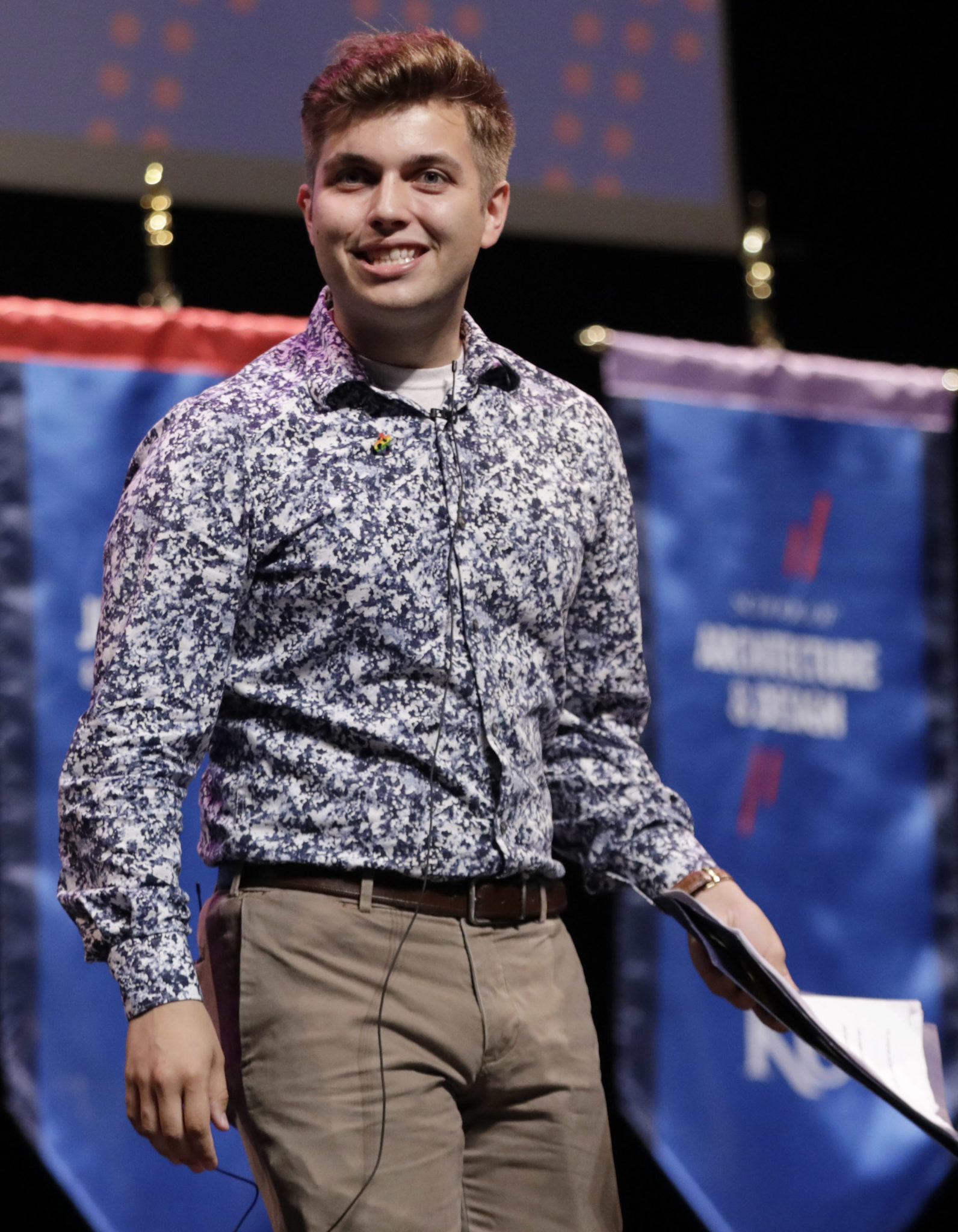 University of Kansas senior Collin Cox addresses incoming freshmen at KU’s opening convocation Sunday, Aug. 19, 2018, at the Lied Center.