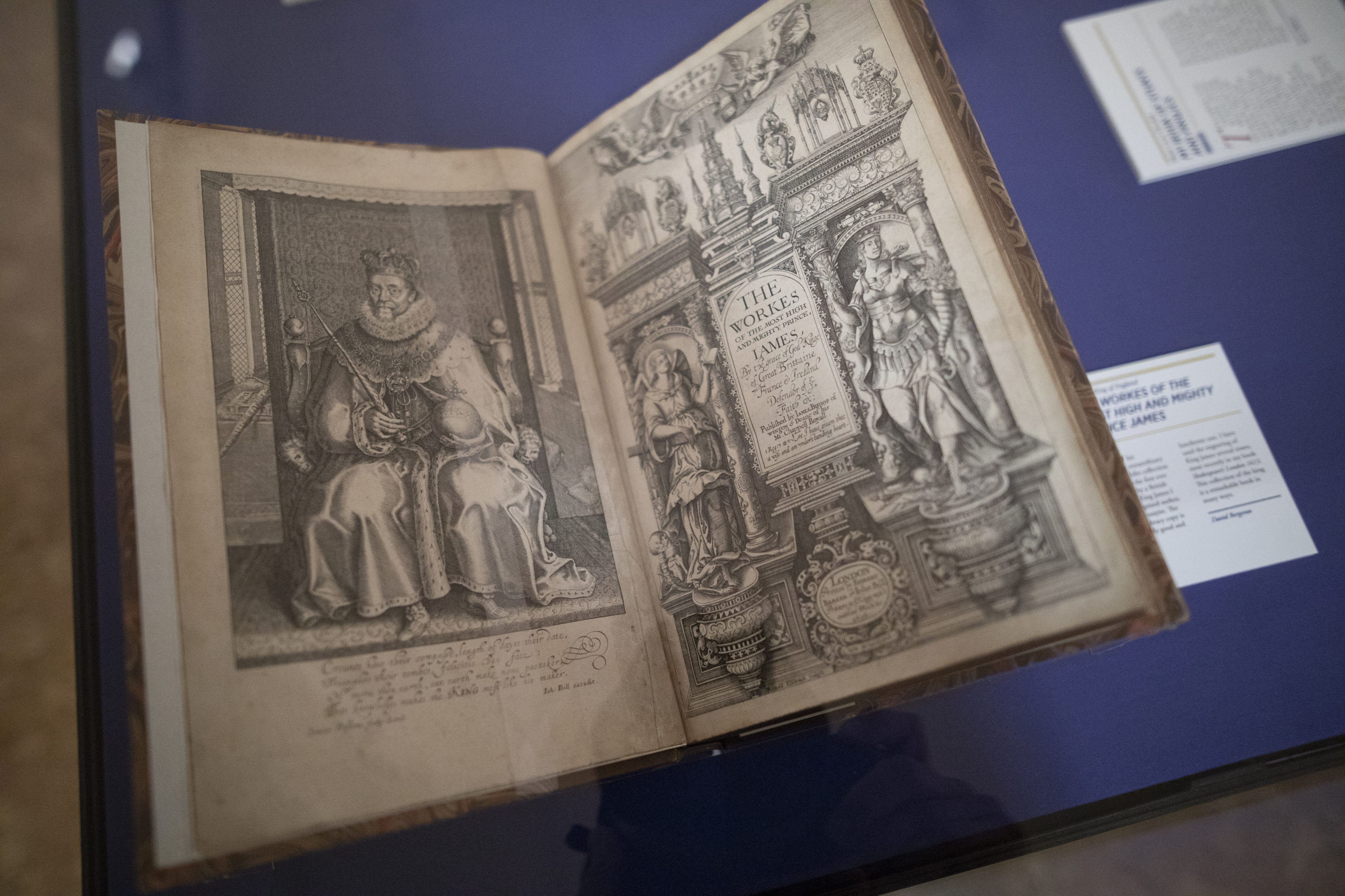 “The Workes of the Most High and Mighty Prince, James,” which dates back to 1616, is one of the museum’s pieces selected for display in a current exhibit celebrating the museum’s 50th anniversary. The exhibit highlights noteworthy collections that have aided or grabbed the attention of faculty members, students and others.