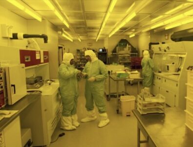 Workers are shown in the laboratory at KU's Center of BioModular Multi-Scale Systems for Precision Medicine.