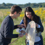 Justin King and Rachel Smith tag a monarch butterfly at the Baker Wetlands on Saturday, Sept. 22, 2018.
