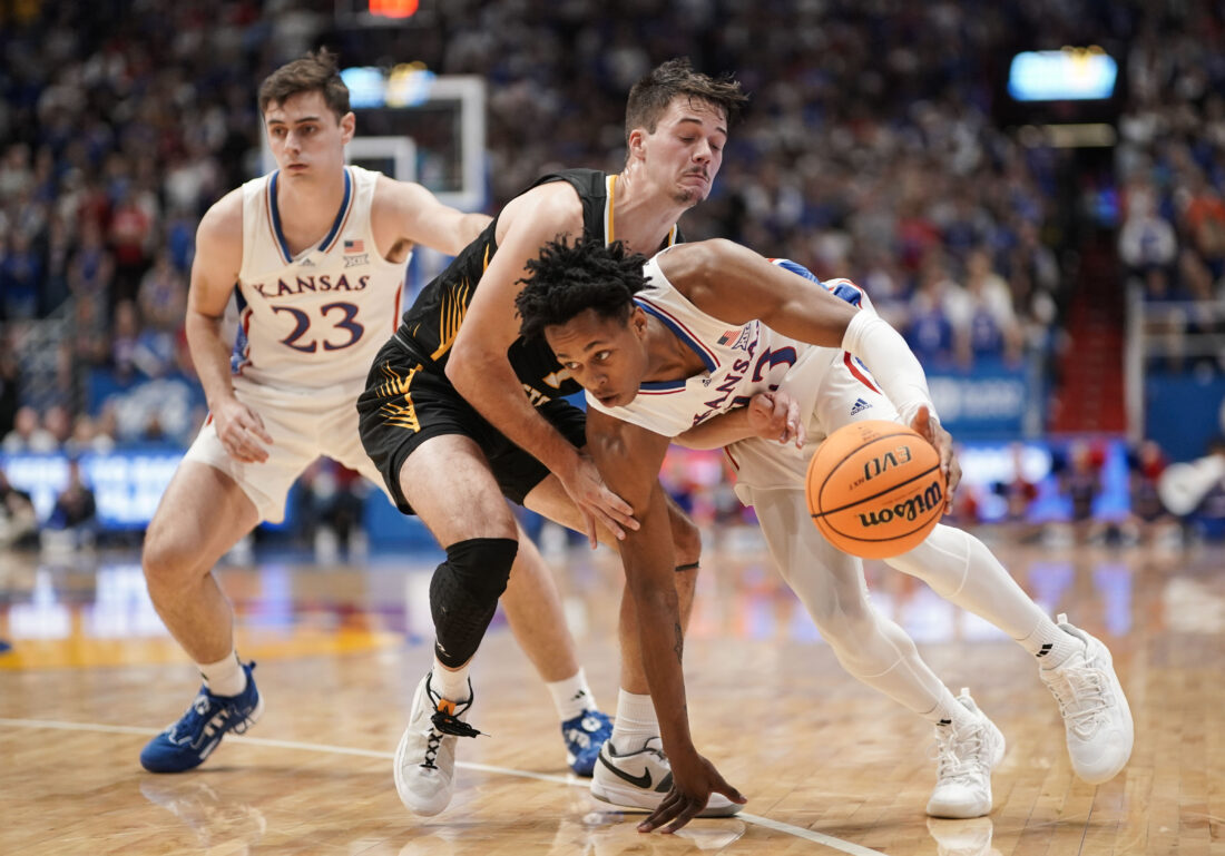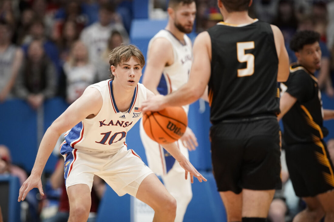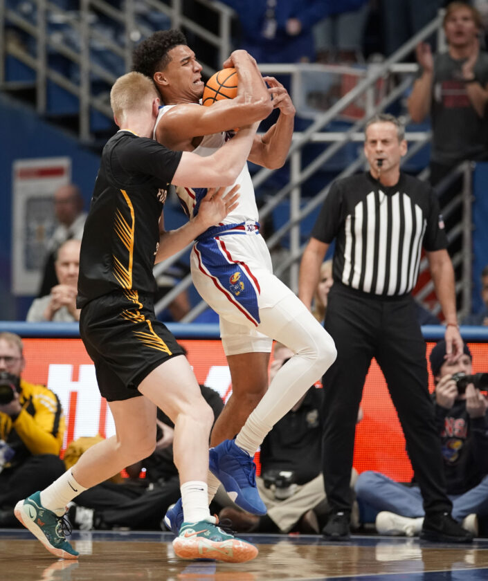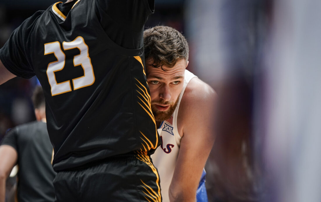 during the first half on Wednesday, Nov. 1, 2023 at Allen Fieldhouse. Photo by Nick Krug
