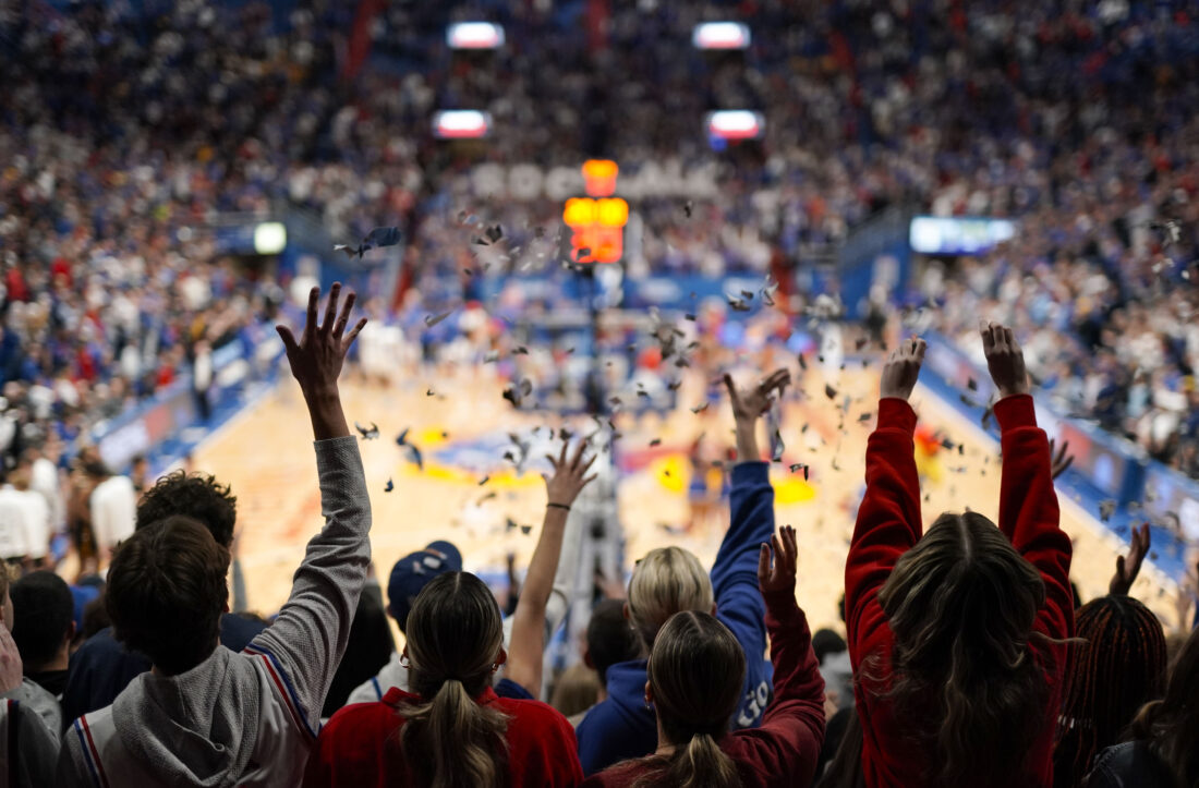 Students toss confetti prior to tipoff on Wednesday, Nov. 1, 2023 at Allen Fieldhouse. Photo by Nick Krug