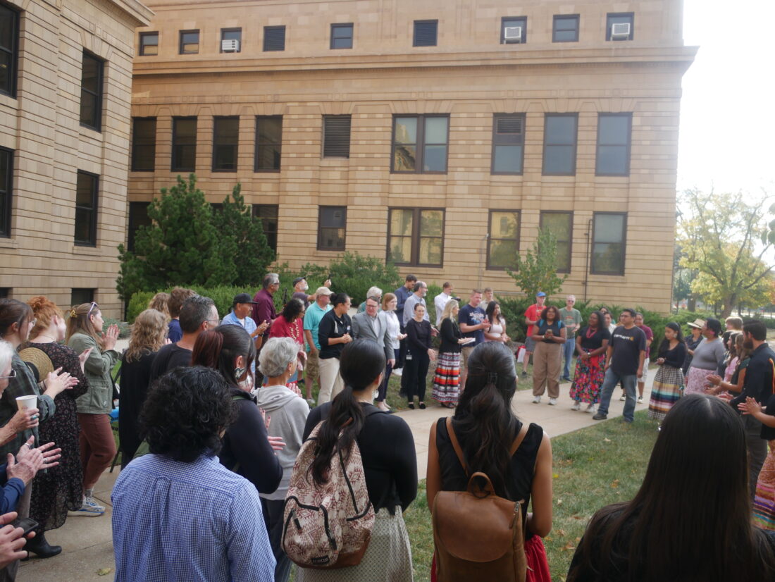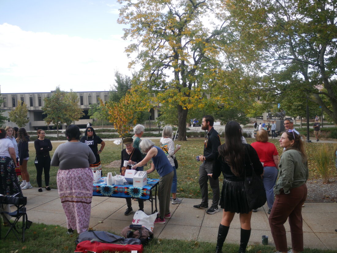 The event was on the lawn of Strong Hall Lawn and was led by 2025-2026 Miss Haskell, Angelina Giago, along with KU First Nations Student Association students and others.