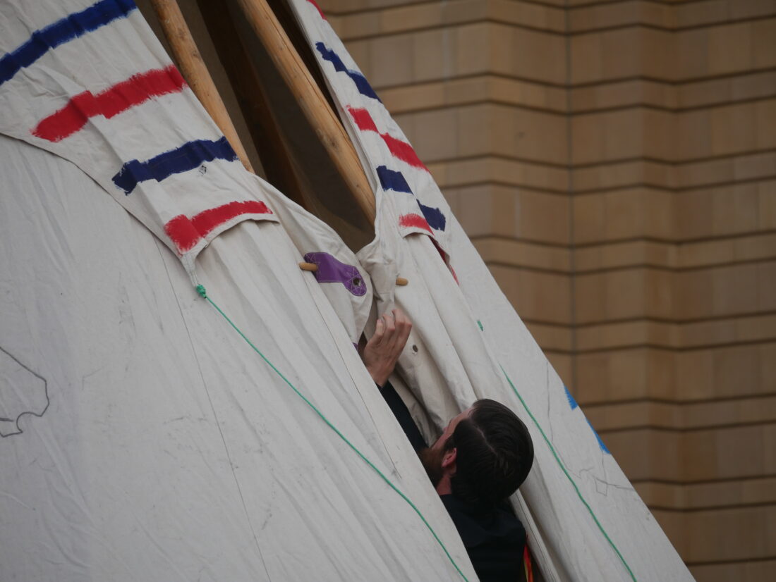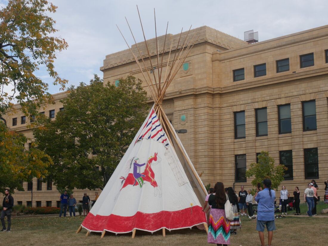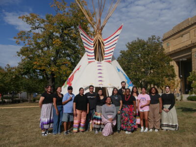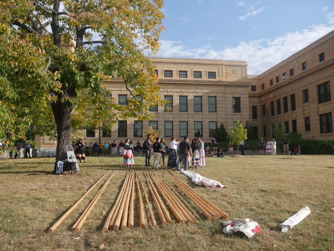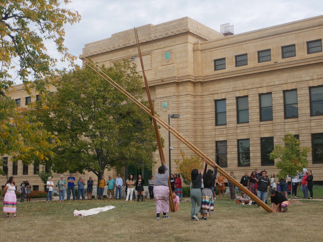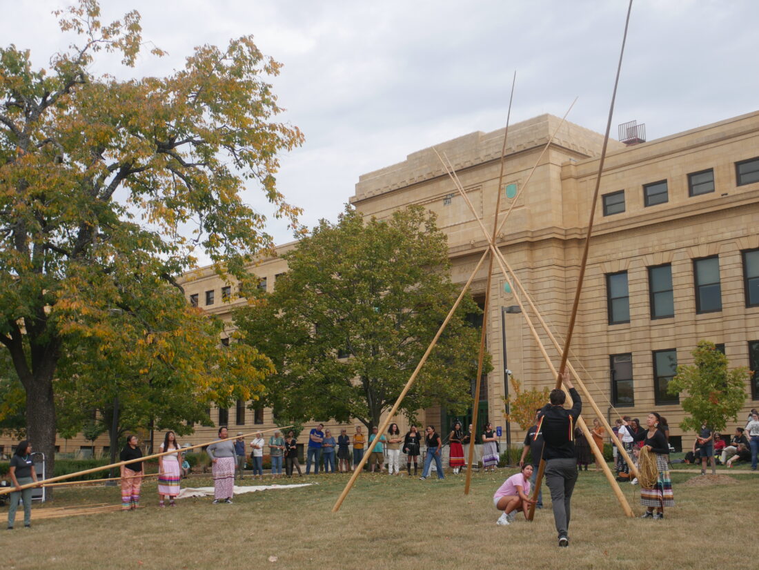 The tipi raising commences on Wednesday, Oct.15, 2025, outside Strong Hall.