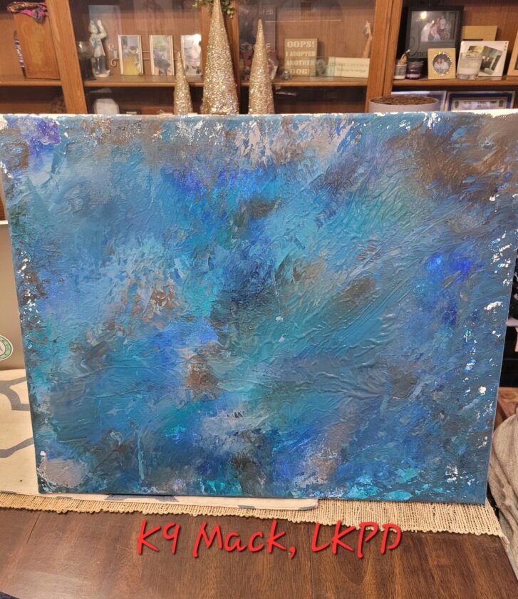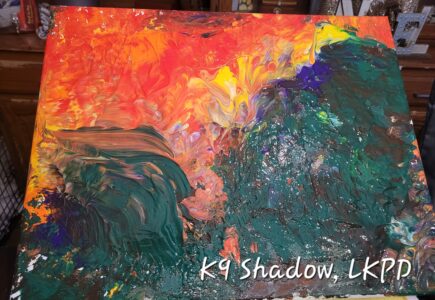 A painting created by Mack, a patrol service dog with the Lawrence Police Department. Mack’s handler is Officer Kevin Henderson.