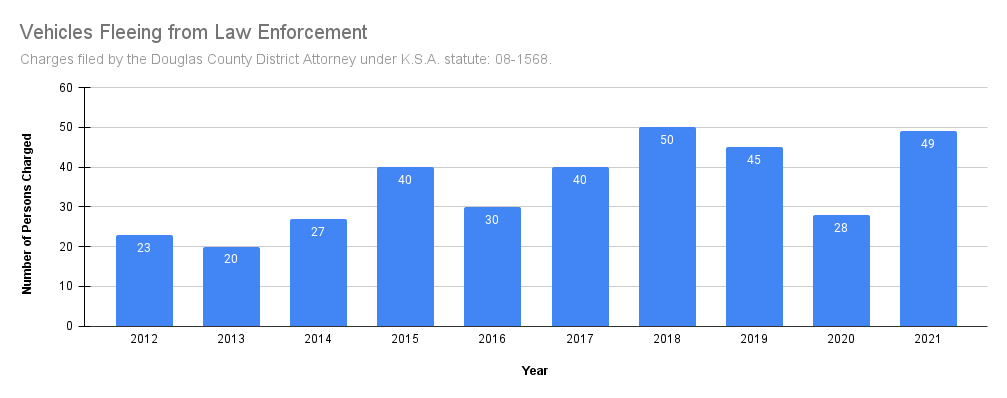 Douglas County District Attorney Suzanne Valdez said that her office was committed to prosecuting drivers who endanger the lives of others. In her first year as district attorney, Valdez brought charges of fleeing and eluding while in a vehicle in 49 cases.