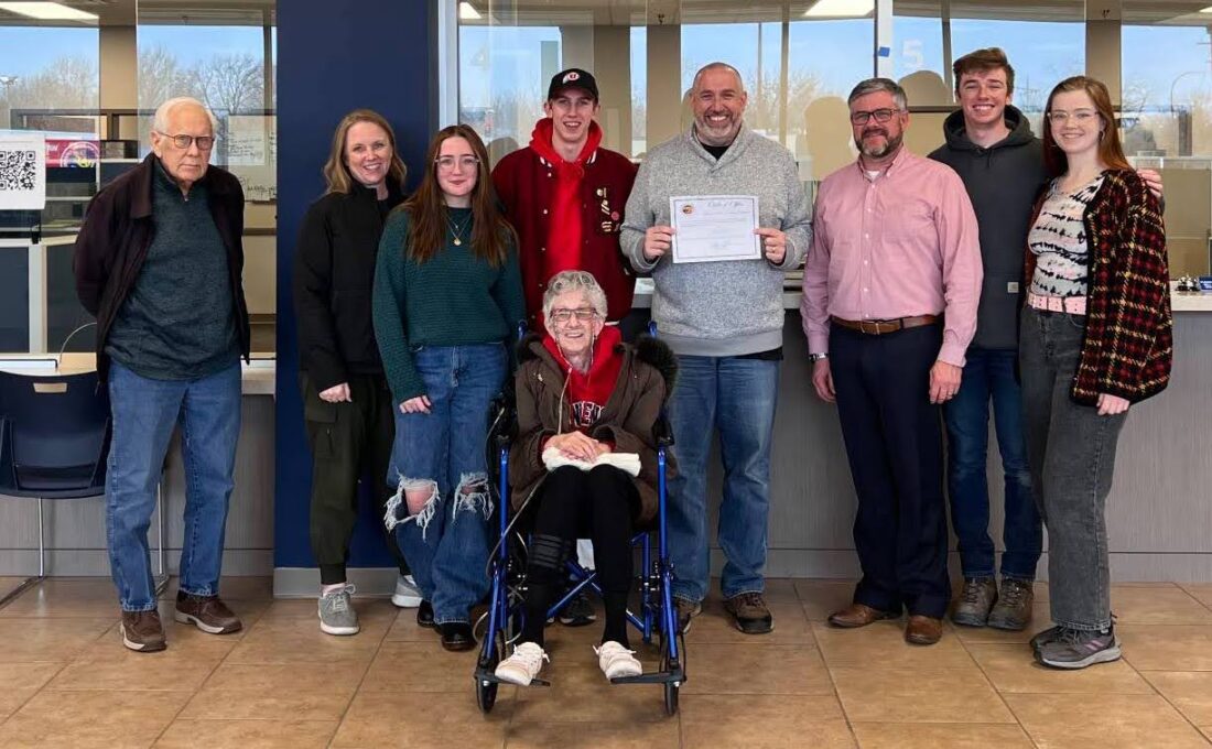Lawrence school board member Ronald “G.R.” Gordon-Ross poses with family outside of the Douglas County elections office on Jan. 5, after being sworn-in to a new term on the board. Pictured next to Gordon-Ross on the right, is Douglas County Clerk Jamie Shew.