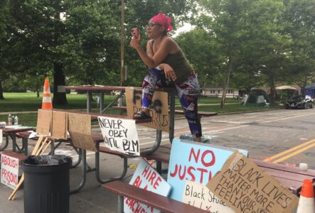Natasha Neal is pictured on June 29, 2020, during a shutdown of Massachusetts Street near South Park. Activists blocked the street for several days in an effort to free Rontarus Washington Jr. from jail.