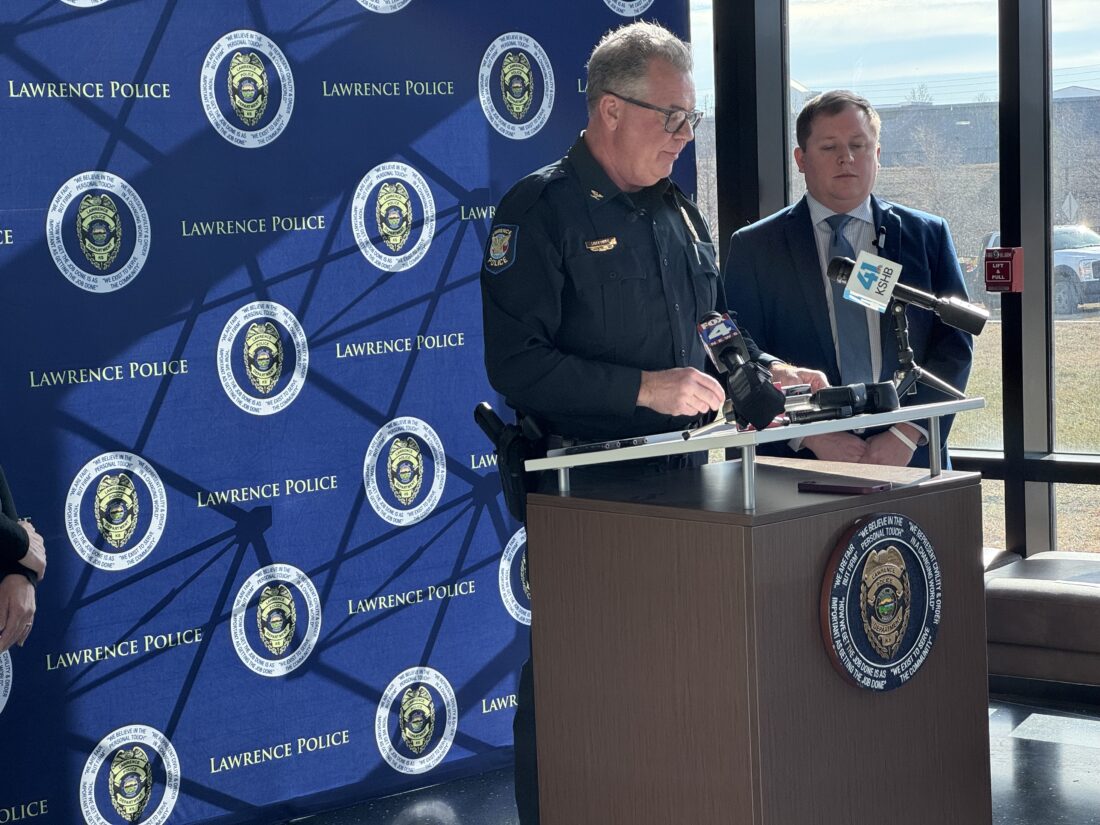 Lawrence Police Chief Rich Lockhart and Douglas County District Attorney Dakota Loomis announce an arrest in a 25-year old Lawrence sexual assault case on Dec. 30, 2025.