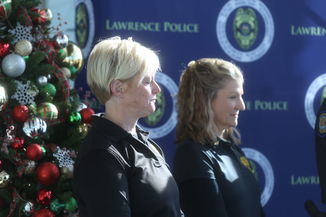 Detectives Meghan Bardwell and Amy Price of the Lawrence Police Department are pictured at a Dec. 30, 2025 press conference.