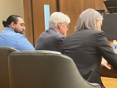 Defendant Miquel Brown, left, is pictured with attorneys Gary West and Jessica Glendening on Wednesday, Nov. 5, 2025, in Douglas County District Court.