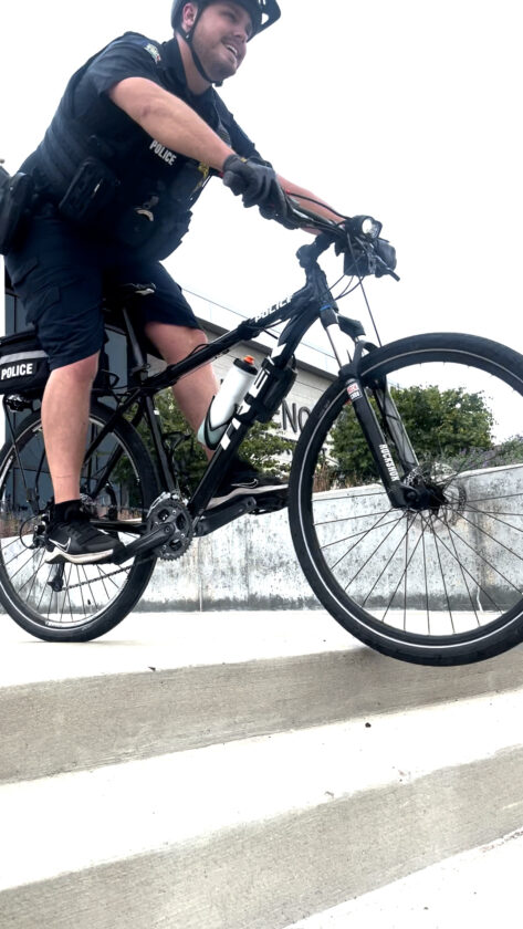 “So one, you have the extra weight,” Hogue said. “You have a loaded firearm on your side, and in addition to riding a bike, we’re either doing crowd control, enforcing the law or just simply engaging with the community, (but) you’re much more approachable on a bike than you are in a patrol car.”