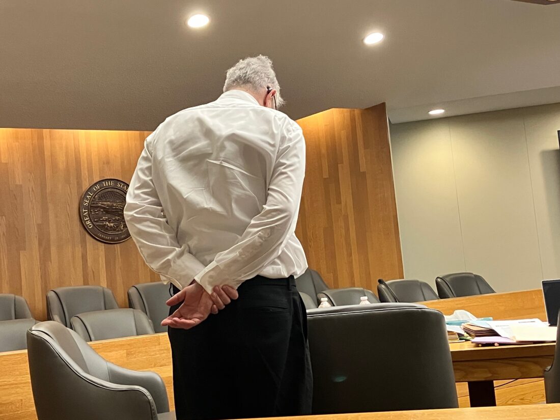 Mark Gridley stands during a break in his preliminary hearing Thursday, Oct. 2, 2025, in Douglas County District Court.