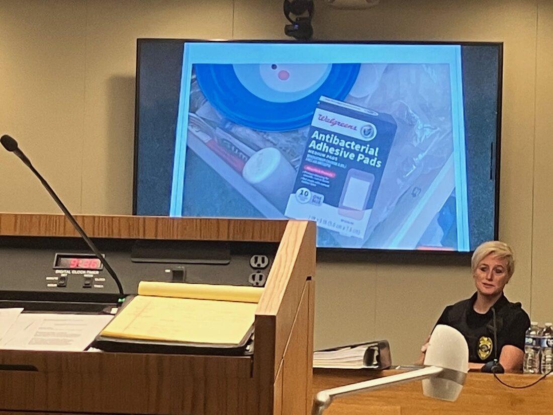 In the trash receptacle at the school, Bardwell testified that police found a bag of wadded up tape, paper towels, a three-pack box of condoms that was empty and papers with Gridley’s name on them, among other items.