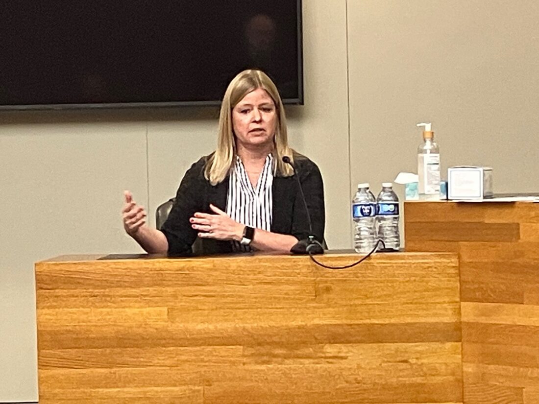 The Lawrence school district’s executive director of special education, Lori Stithem, testifies Friday, Oct. 3, 2025, at the preliminary hearing for Mark Gridley in Douglas County District Court.
