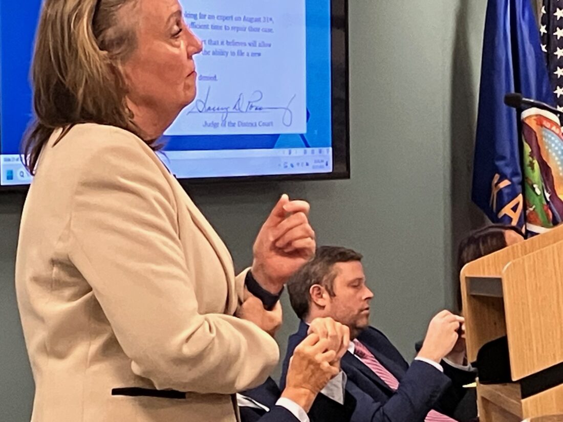 Attorney Gaye Tibbets argues on behalf of the state in the Carrody Buchhorn’s wrongful conviction trial Monday, Oct. 27, 2025, in Douglas County District Court.