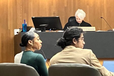 Shaleah N. Kauffman, left, is pictured with one of her attorneys, Anshul Banga, and Douglas County Judge Sally Pokorny on Tuesday, March 17, 2026.