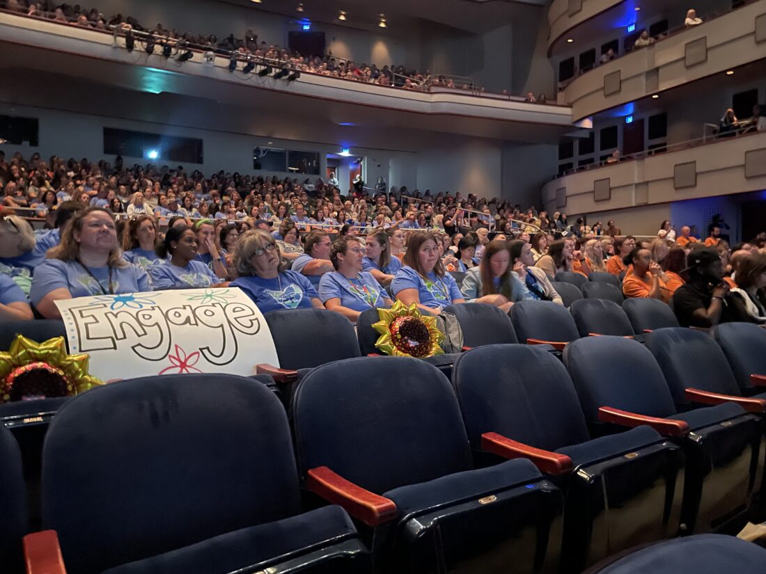 Lawrence school district employees pack the Lied Center auditorium for the district’s back-to-school kickoff event on Tuesday, Aug. 15, 2023.