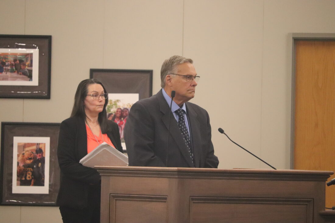 From left to right, Cynde Frick, executive director of finance, and Deputy Superintendent Larry Englebrick are pictured on Monday, April 27, 2026.