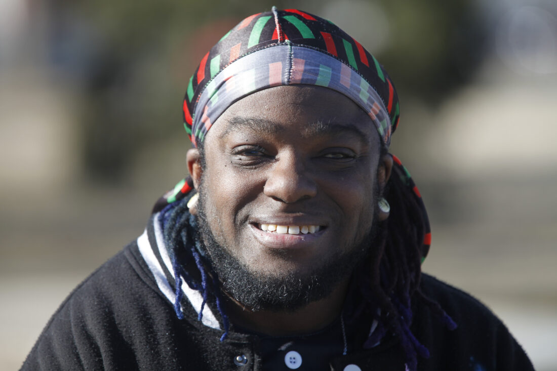 Luc Bensimon, an activist for the Black Trans Advocacy Coalition, is pictured during an interview about transgender rights issues, on Friday, Feb. 10, 2023, in his hometown of Topeka. Bensimon says a bill being considered by Kansas legislators to define male and female in state law based on people’s anatomy at birth will cause panic among fellow transgender people.