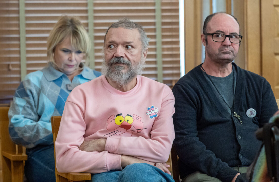 Kevin Elliott, left, and Claven Snow, of Lawrence, appear Friday at a legislative hearing in Topeka.