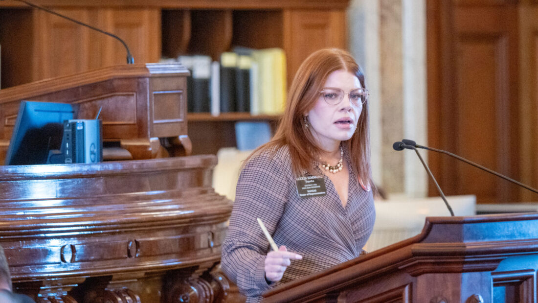 Rep. Alexis Simmons, D-Topeka, talks about her experience with sexual assault during a Jan. 28, 2026, House debate on a bill to regulate who can use a bathroom in a government building.