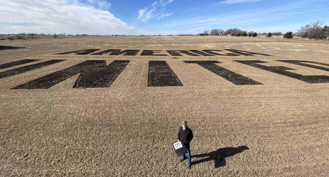 Lawrence crop artist burns message of unity into Kansas field for Biden-Harris inauguration