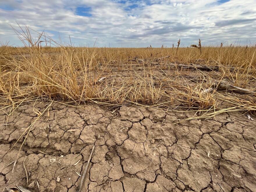 Across western Kansas, many fields planted with wheat months ago now look like barren wastelands. The gaping spaces between rows of brown, shriveled plants reveal hardened dirt that’s scarred with deep cracks from baking in the sun.