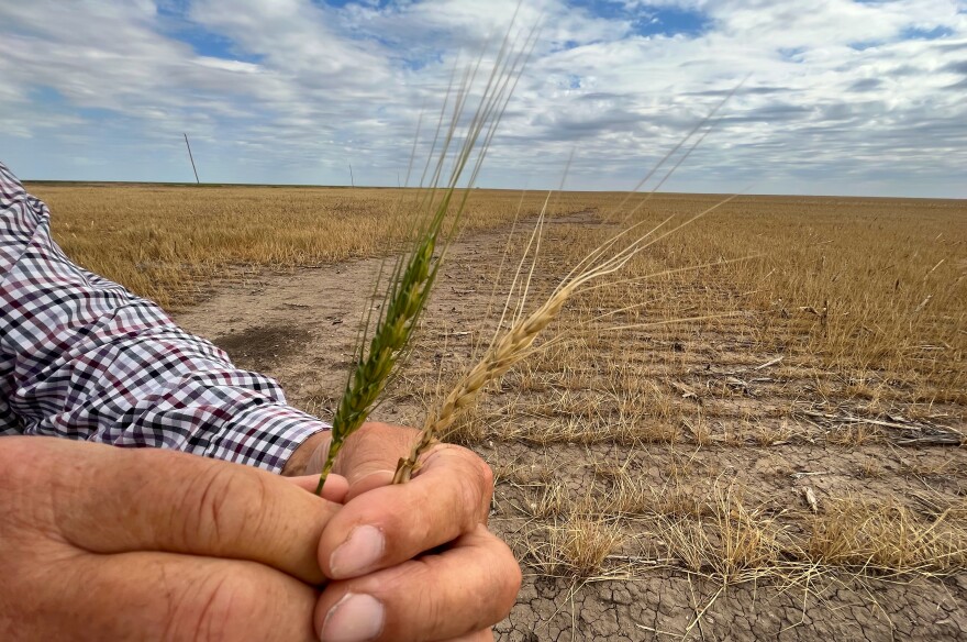LANE COUNTY, Kansas — This time of year, the wheat growing in this part of western Kansas should be thigh-high and lush green.