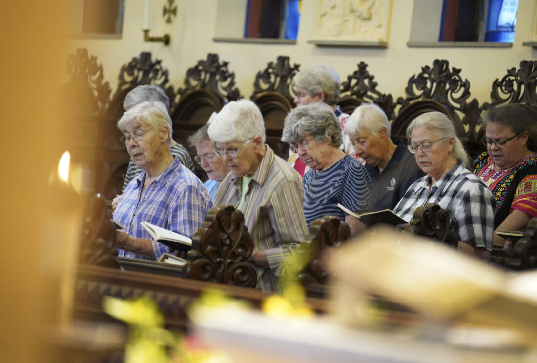 Sisters join in song during evening prayer at the Mount St. Scholastica Benedictine monastery in Atchison, Tuesday, July 16, 2024.