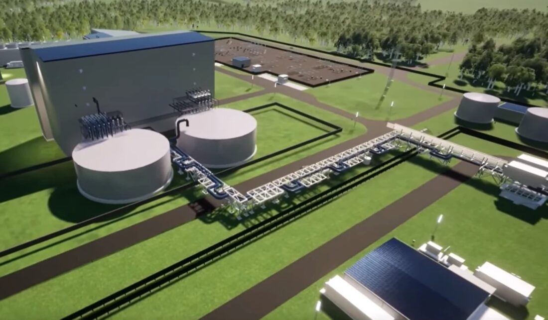 This screenshot from a TerraPower video illustrates the company’s nuclear power plant design.
