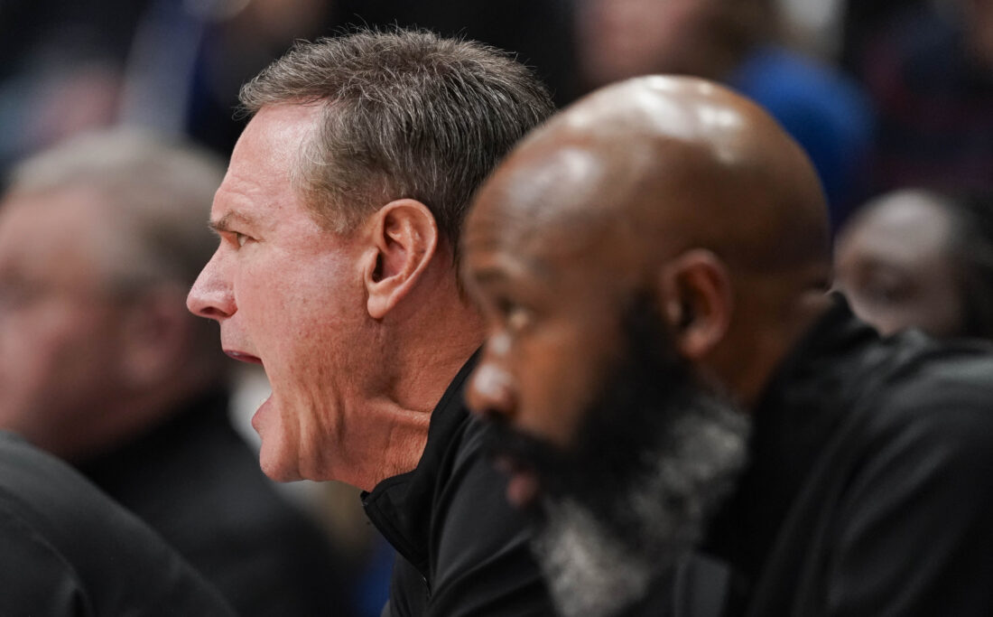 Kansas head coach Bill Self yells at his defense during the second half on Tuesday, Nov. 11, 2025 at Allen Fieldhouse. Photo by Nick Krug