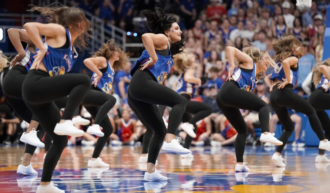 The Rock Chalk dancers perform during Late Night in the Phog on Friday, Oct. 17, 2025 at Allen Fieldhouse. Photo by Nick Krug