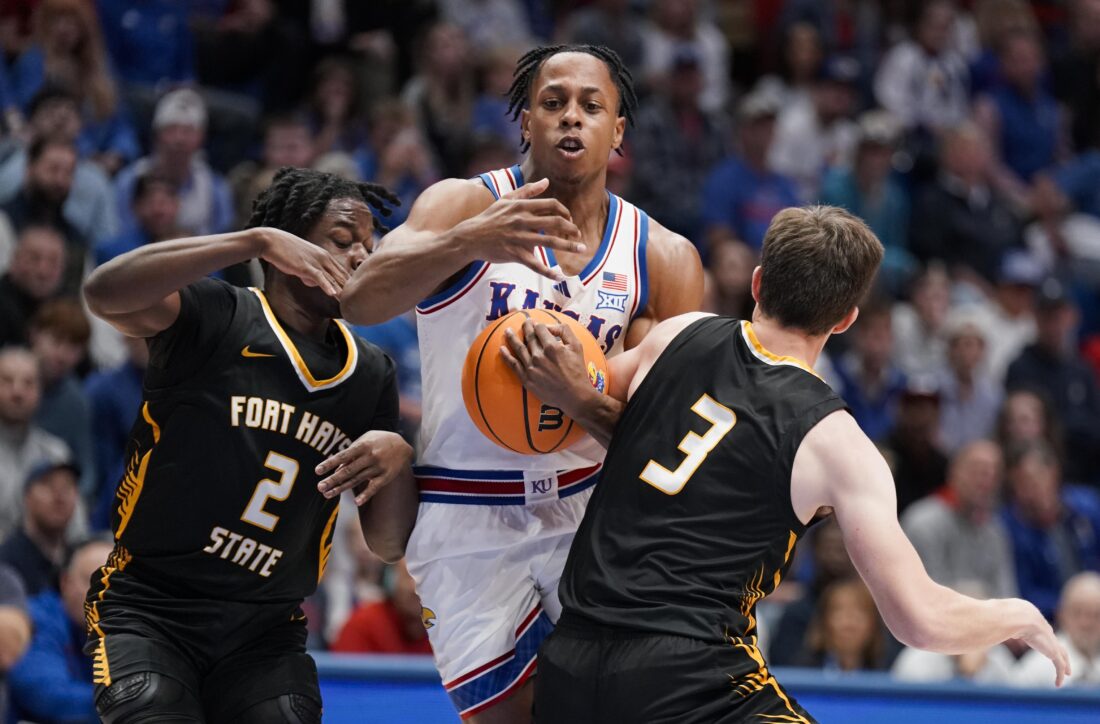 Photo Gallery: Jayhawks come together in 2nd, beat FHSU 71-35