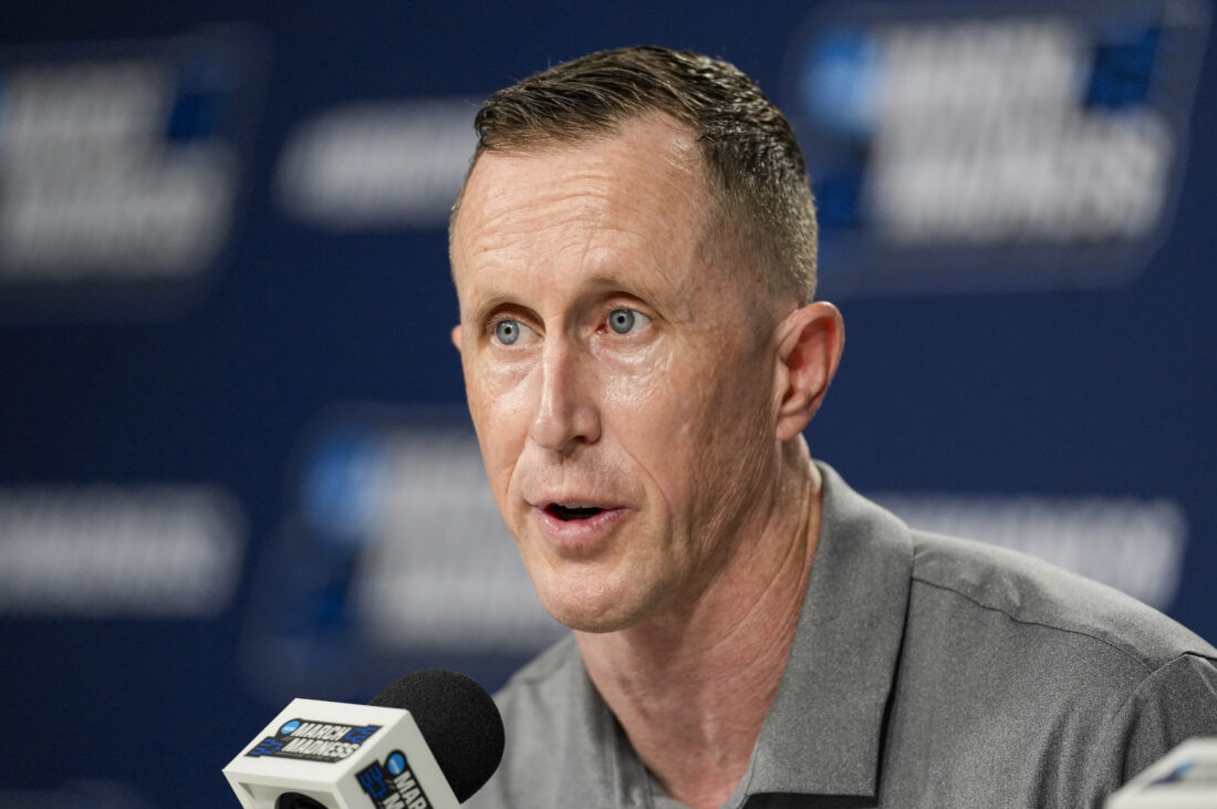 California Baptist head coach Rick Croy talks with media members during a press conference on Thursday, March 19, 2026 at Viejas Arena in San Diego. Photo by Nick Krug