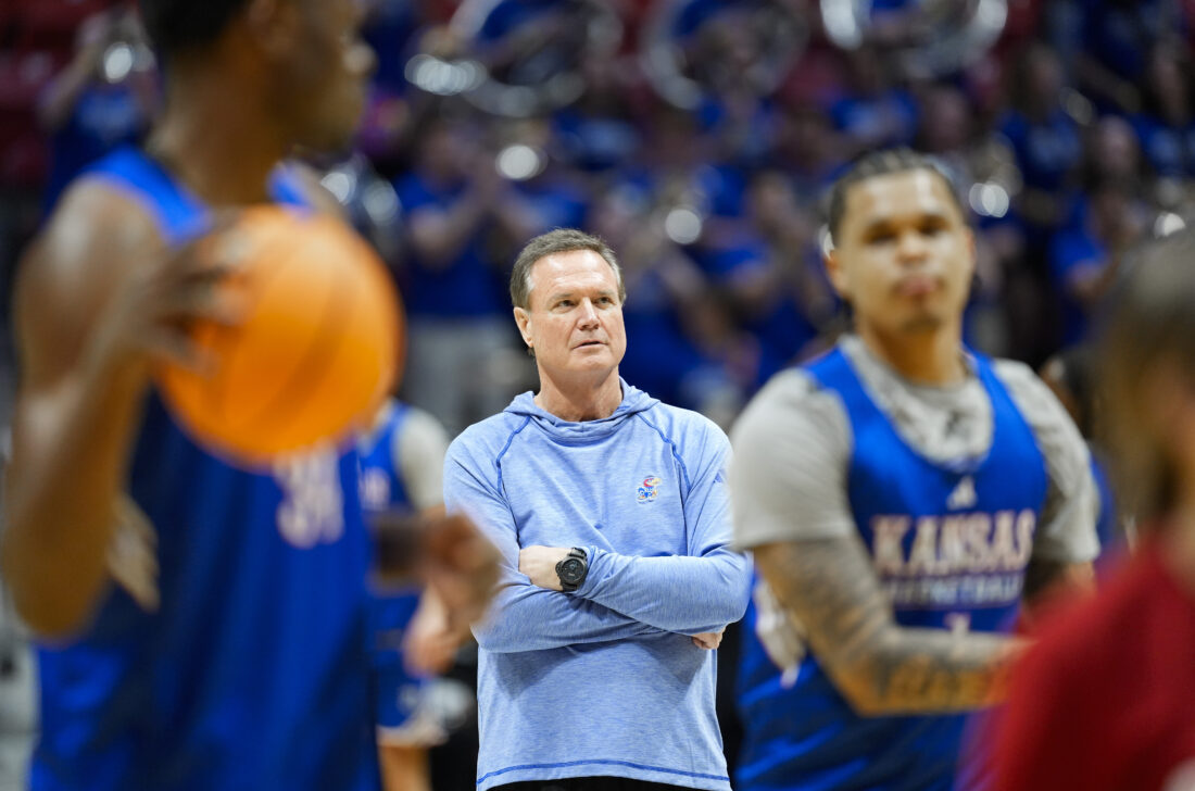 Kansas head coach Bill Self watches over practice on Thursday, March 19, 2026 at Viejas Arena in San Diego. Photo by Nick Krug