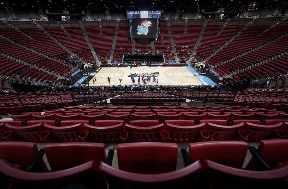 Kansas players take the court for practice on Thursday, March 19, 2026 at Viejas Arena in San Diego. Photo by Nick Krug