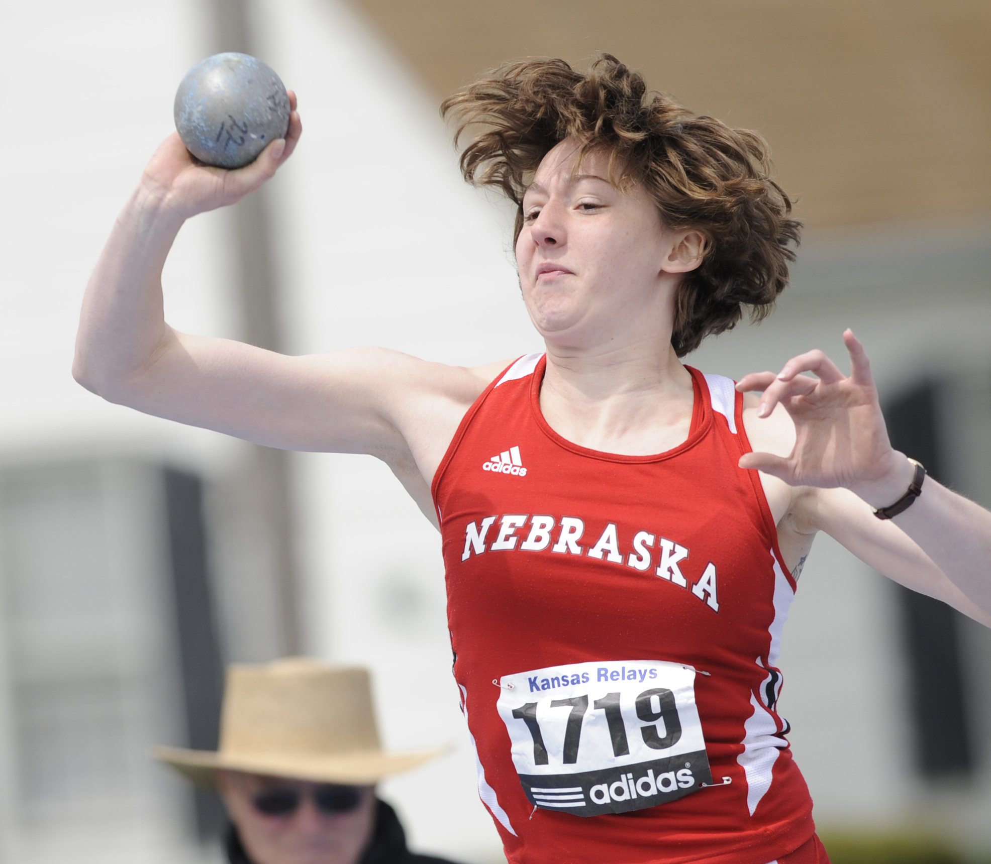 Nebraska's Rachel Butler shows her stuff during the Women's shot put on Wednesday April 19, 2011 in Memorial Stadium. The 2011 Kansas Relays began Wednesday.