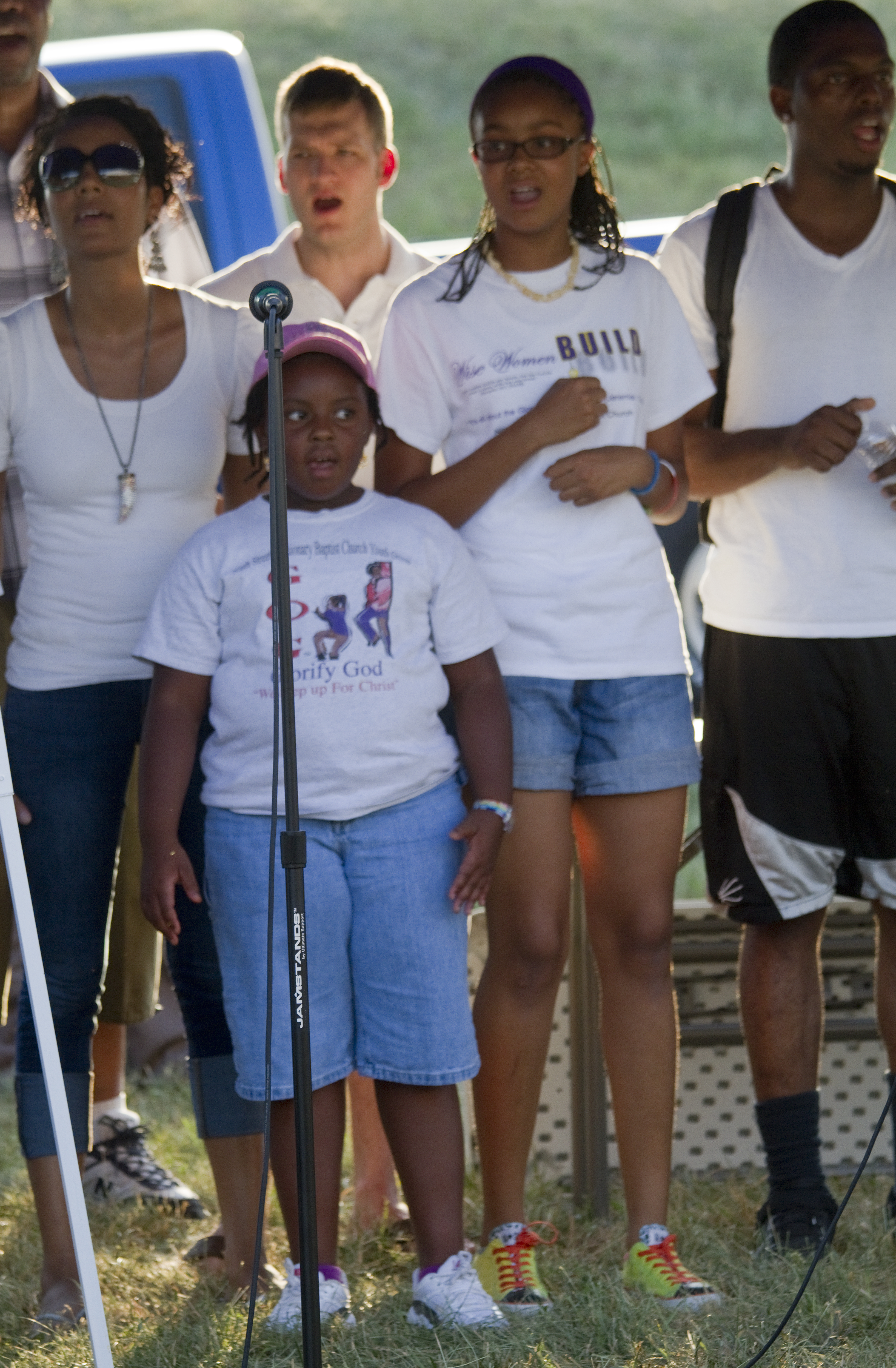 Members of the Ninth Street Baptist Church choir perform during the event. The revival was sponsored by Ninth Street Baptist Church, Plymouth Congregational Church and the Salvation Army. Another revival will take place Aug. 24.