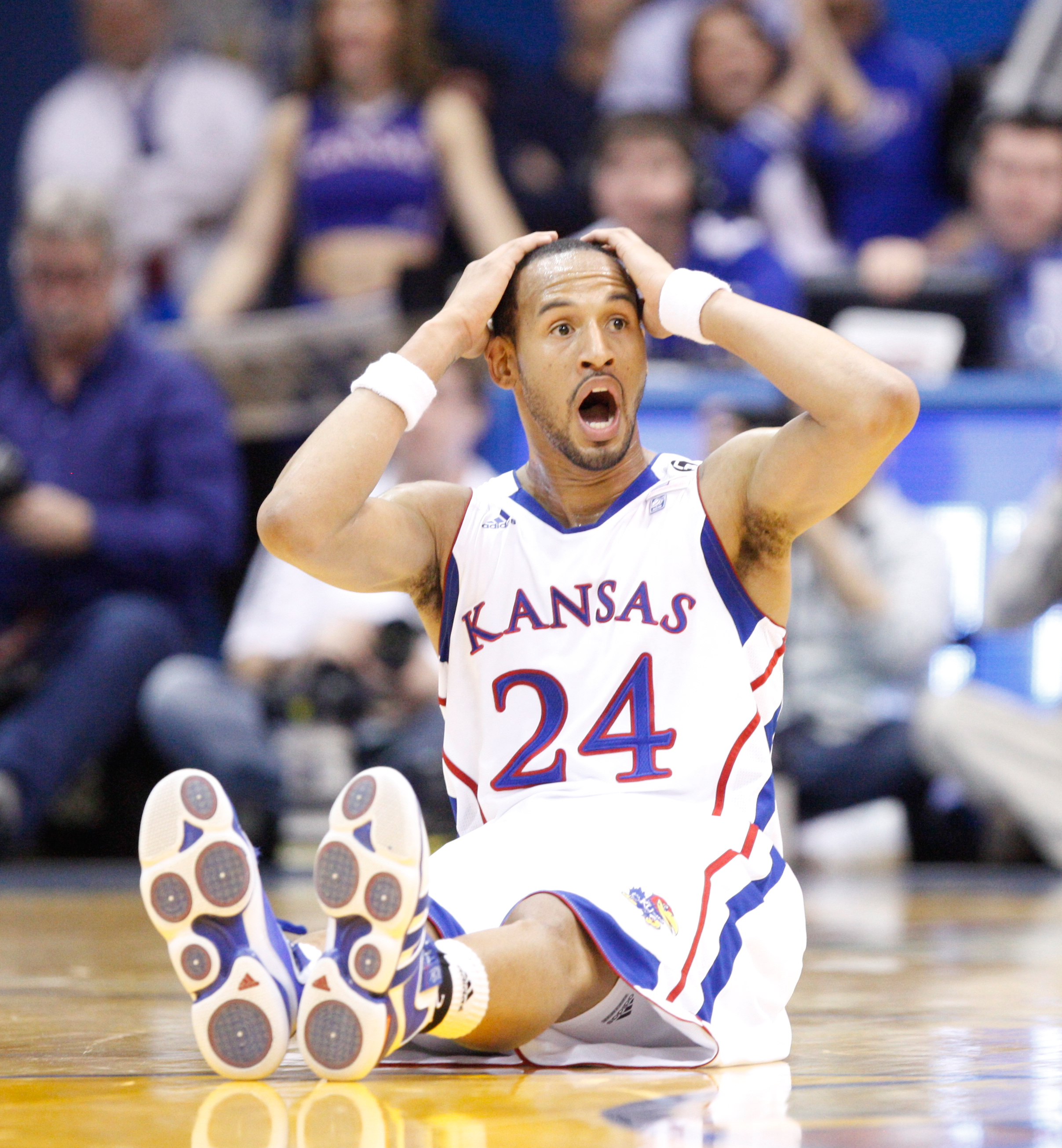 Kansas guard Travis Releford reacts after being whistled for a foul during the second half on Monday, Feb. 7, 2011 at Allen Fieldhouse.